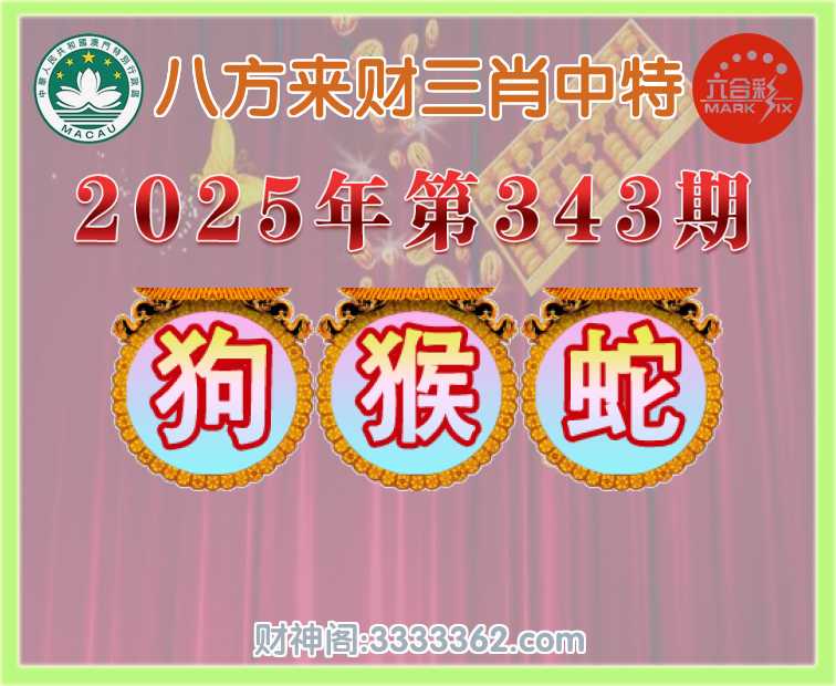 343期:〖八方来财〗🥉三肖中特🥉【狗.猴.蛇】开:00准