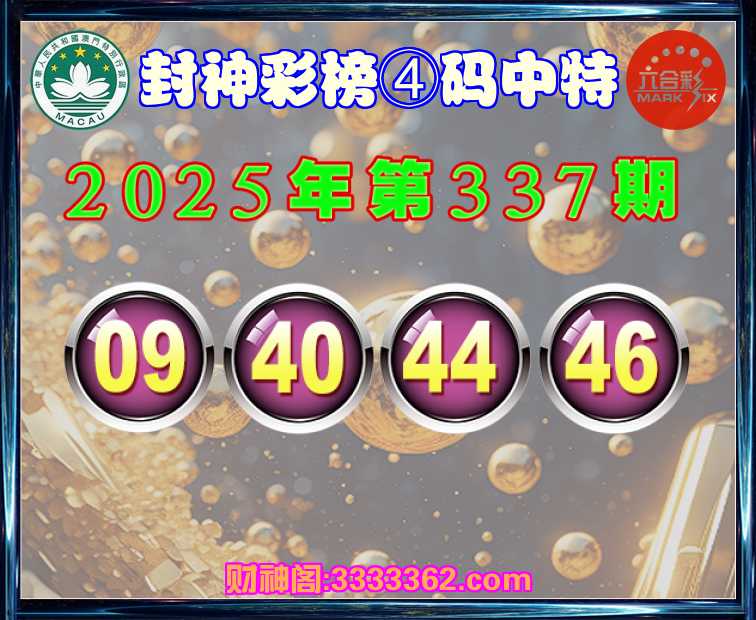 337期:【封神彩榜】 🪢④码中特🪢【09.40.44.46】开:09
