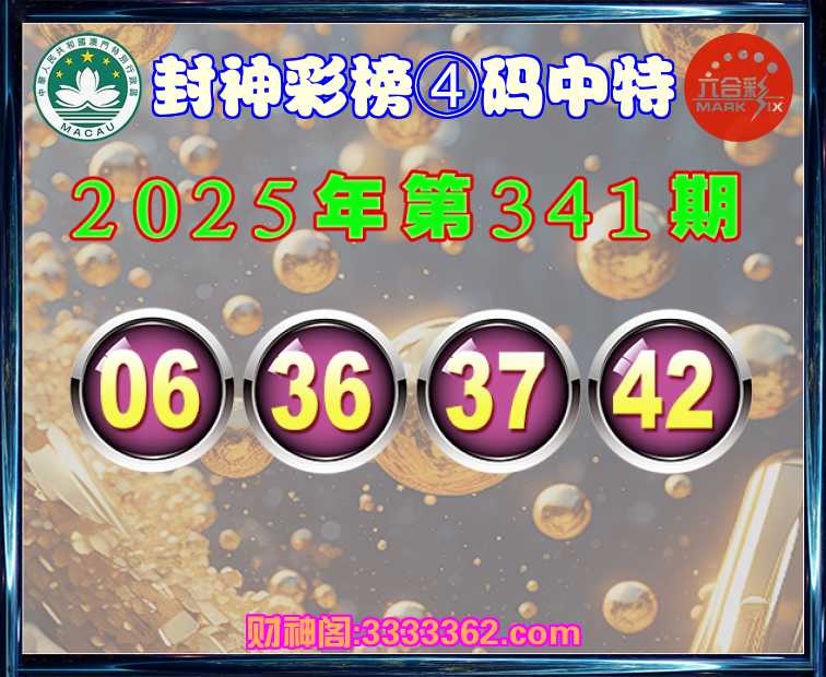 341期:【封神彩榜】 🪢④码中特🪢【06.36.37.42】开:06