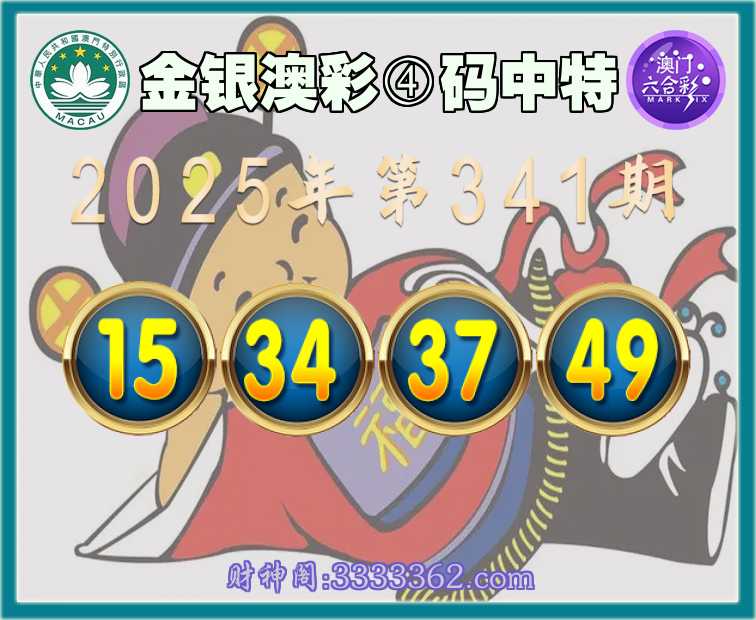341期: ♥️『金银澳彩』 ♥️④码中特♥️【15.34.37.49】开:00准